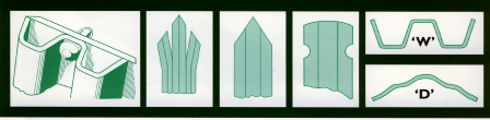 Although each paling is made from relatively thin steel the shape of the profile into which it is pressed gives its remarkable strength. Palings are referred to as ‘W’ or ‘D’ as the picture below shows. And can have a variety of top finishes.